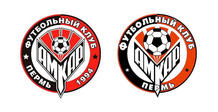 Последняя эмблема ФК из Перми практически не отличается от прежней. Оранжевый цвет заменили на красный. Появился год основания клуба, а мяч стал меньше.